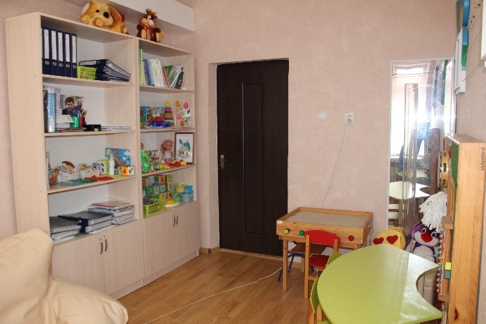 В кабинете есть учебное и игровое оборудование, современные пособия и дидактический материал для коррекционно-развивающих занятий и индивидуальной работы в соответствии с возрастом детей, требованиями коррекционных программ. Так же стол для рисования песком «Песочная фантазия», зеркало для артикуляционных работ. В кабинетах проводятся подгрупповые и индивидуальные коррекционно – развивающие занятия с детьми, консультирование родителей и воспитателей.